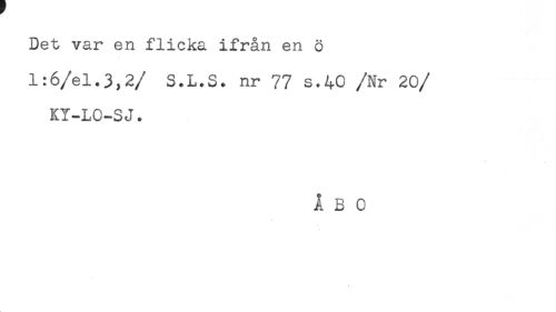 //// Det var en flicka ifrån en ö //// l:6/el.3,2/ S.L.S. nr 77 s.40 /Nr 20 //// /KY-LO-SJ. //// ÅBO ////