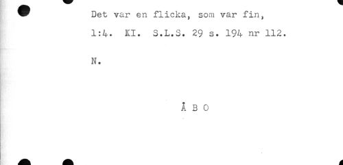 //// * Det var en flicka, som var fin, //// 1:4. Kl. S.L.S. 29 s. 194 nr 112. //// Kr... //// N. //// ÅBO //// <* ////