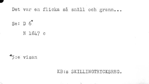 //// Det var en flicka så snäll och grann... //// Se: D 6* //// N 1347 c //// *5:e visan //// KB:s SKILLINGTRYCKSREG. ////