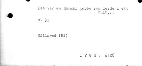 //// Det var en gammal gubbe som levde i ett //// ^ hult,*. //// S. 35 //// Gällared (Hl) //// ' - ' ' //// I F G H : 4326 //// - ////