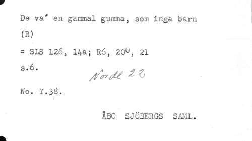 //// De va' en gammal gumma, som inga barn //// (R) //// = SLS 126, 14a; R6, 20^, 21 //// No. Y.3S. //// ( //// ÅBO SJÖBERGS SAML. ////