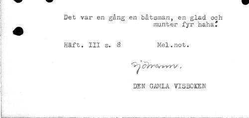 //// ] //// ! //// t //// j Det var en gång en båtsman, en glad och //// ^^ munter fyr hahaf //// ' Häft. III s. 3 Mel.not. //// t //// DEN GAMLA VISBOKEN //// t ////