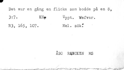 //// Det var en gång en flicka som bodde på en ö, //// 3:7. KH? Uppt. Wefvar. //// R3, 165, 107. Mel. sökf //// //// /ÅBO R^NCKEN MS //// * //// ^ .... ////