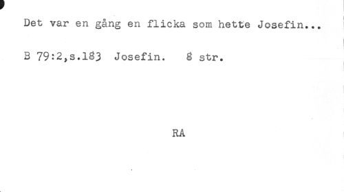 //// I //// ) //// Det var en gång en flicka som hette Josefin... //// 3 79:2,s.163 Josefin. 8 str. //// RA //// L ////