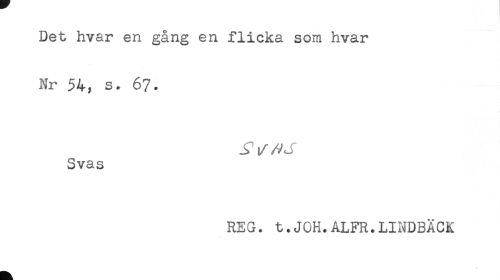 //// Det hvar en gång en flicka som hvar //// Nr 54, s. 67. //// Svas //// REG. t.JOH.ALFR.LINDBÄCK ////