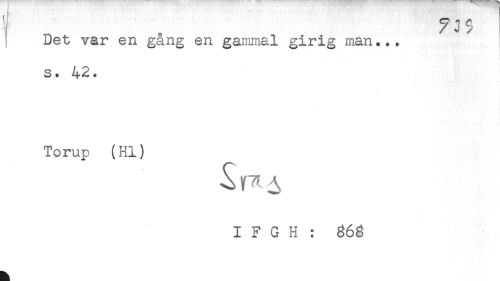 //// ! ^ * //// ] Det var en gang en gammal girig man... //// s. 42. //// Torup (Hl) //// I F G H : 868 ////