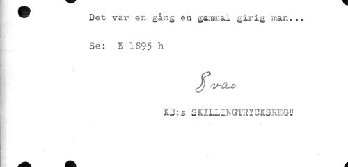 //// * Det var en gång en gammal girig man... //// . //// Se: E 1895 h //// K //// KB:s SKILLINGTRYCKSREG^ //// < ////