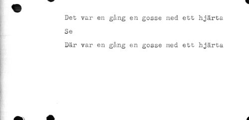 //// Det var en gång en gosse med ett hjärta //// HS'* * //// K //// Se //// Där var en gång en gosse med ett hjärta ////