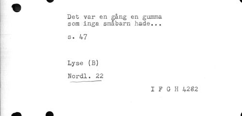 //// Det var en gång en gumma //// som inga småbarn hade... //// s. 47 //// Lyse (B) //// -3 //// Nordl.__22 //// I F G H 4282 //// t' - ////