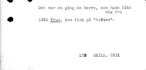 //// Det var en gång en herre, som hade fått //// i sig fru //// ^ 1382 Frun, som fick på "tafsen". //// T //// r //// LUB SKILL. UNIK //// n .- . ^ ... — . //// / - ^ ////
