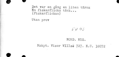 //// Det var en gång en liten tärna //// En fiskarflicka täck... //// (Fiskarflickan) //// Utan prov //// NORD. MUS. //// Mskpt. Visor VIIIsc 727- E.U. 32072 ////