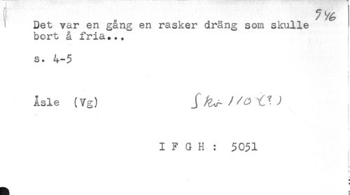 //// S Det var en gang en rasker dräng som skulle //// bort å fria... //// - //// s. 4-5 //// : //// ! //// < //// Åsle (Vg) //// i- //// i //// I F G H : 5051 ////