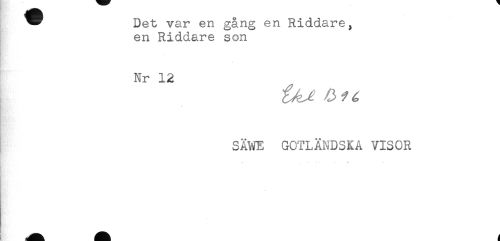 //// * Det var en gång en Riddare, //// en Riddare son //// Nr 12 //// SÄWE GOTLÄNDSKA VISOR //// . .. ... ////