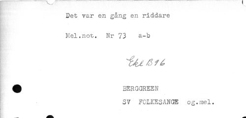 //// Det var en gång en riddare //// Mel.not. Nr 73 a-b //// H BERGGREEN //// ' //// SV FOLKESANGE og.mel. ////