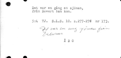 //// Det var en gång en sjöman, //// från Dovert han kom. //// 5:4 TJ. S.L.S. 10. s.277-278 nr 173. //// ÅBO ////