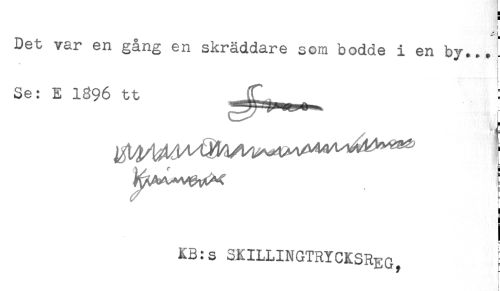 //// Det var en gång en skräddare som bodde i en by.... //// - j //// Se: E I896 tt ^^ //// M //// j //// KB:s SKILLINGTRYCKSREG^ ; //// r //// < //// t ////