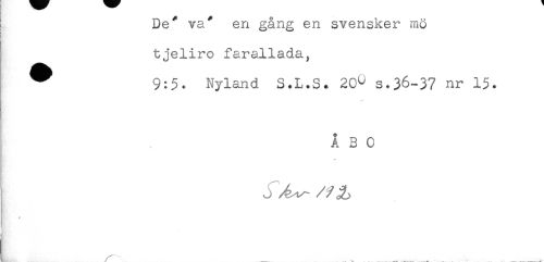 //// ! De* va* en gång en svensker mö //// tjeliro farallada, //// ^ 9:5. Nyland S.L.S. 20^ s.36-37 nr 15. //// ÅBO ////