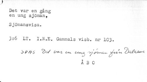 //// - . //// Det var en gång //// en ung sjöman. //// Sjömansvisa. //// 3:6 LT. I.N.E. Gammals visb. nr 103. //// ÅBO ////