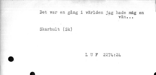 //// ' - - . . //// * " * f ? //// Det var en gång i världen jag hade mmg en //// vän... //// Kjr, - . //// Skarhult (Sk) //// L U F 2274:24 ////