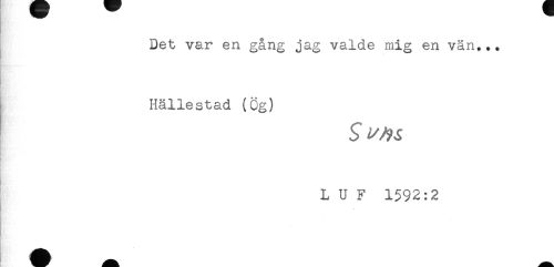 //// Det var en gång jag valde mig en vän... //// Ha'' ' * //// Hällestad (Ög) //// L U F 1592:2 //// - ////