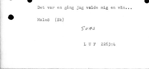 //// Det var en gång jag valde mig en vän... //// ^ Malmö (Sk) //// $ ^ r i //// t,'- //// L U F 2263:4 //// . ////