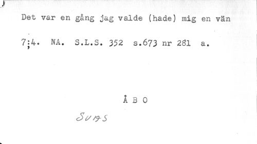 //// Det var en gång jag valde (hade) mig en vän //// * //// * //// 7:4. NA. S.L.S. 352 s.673 nr 261 a. //// y //// ÅBO //// * ////