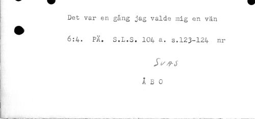 //// Det var en gång jag valde mig en van //// 6:4. PÄ. S.L.S. 104 a. s.123-124 nr //// ÅBO ////