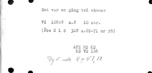 //// i Det var en gång två vänner //// VS 126:6 s.3 10 str. //// (Åbo S L s 326 s.69-71 nr 56) //// r //// I AFZ MS KB //// I KB VS 126 //// ^ -V? f ^ //// 7 - ^ ////
