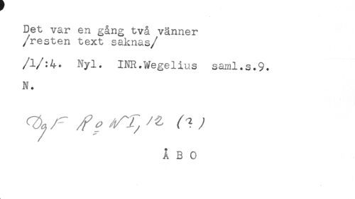 //// Det var en gång två vänner //// /resten text saknas //// //l/:4. Nyl. INR.Wegelius saml.s.9. //// N. //// t ////