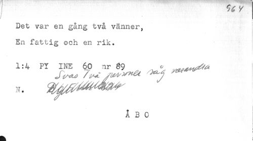 //// Det var en gång två vänner, //// En fattig och en rik. //// 1:4 PY INE 60 nr 89 , * //// N. //// i //// r ////