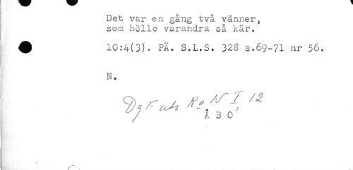//// Det var en gång två vänner, //// som höllo varandra så kär. //// ^ 10:4(3)^ PÄ. S.L.S. 323 s.69-71 nr 56. //// ! //// N. //// A 3 0 //// " //// ' //// t i ////