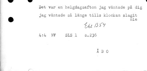 //// Det var en helgdagsafton jag väntade på dig //// jag väntade så länge tills klockan slagit //// j ^ nie //// 4:4 NY SLS 1 s.236 //// ÅBO ////
