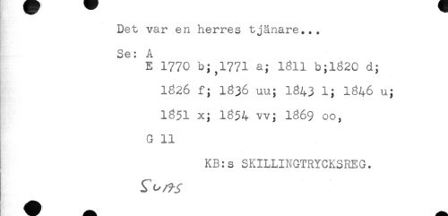 //// Det var en herres tjänare... //// Se: A //// E 1770 b; 1771 a; 1811 b;l820 d; //// 1826 f; 1836 uu; I843 1; 1846 u; //// 1851 x; 1854 vv; 1869 00, //// G 11 //// KB:s SKILLINGTRYCKSREG. ////