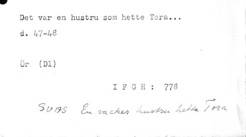 //// < //// t. //// Det var en hustru som hette Tora... //// d. 47-43 j //// Ör (Dl) //// i //// < //// I F G H : 773 //// * ////