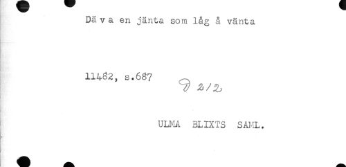 //// Dä v a en jänta som låg å vänta //// 11482, s.687 //// ULMA 3LIXTS SAI^IL. ////