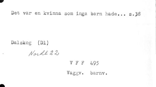 //// Det var en kvinna som inga barn hade... s.33 //// ! //// Dalskog (Dl) //// ! //// V F F 495 //// Vaggv. bamv. ////