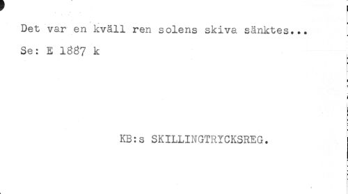//// [ //// Det var en kväll ren solens skiva sänktes... //// a //// Se: E 1837 k //// ! //// a //// i //// < //// i //// KB:s SKILLINGTRYCKSREG. //// c //// t= //// H //// f //// k ////