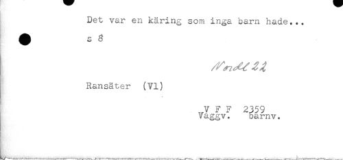 //// Det var en käring som inga barn hade... //// Ransäter (VI) //// v F F 2359 //// Vaggv. oarnv. //// S^y* -----——*----^——.^r--,-——----——... ——-----,---— ////
