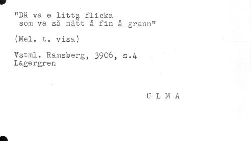 //// "Dä va e littg flicka //// som va så nä^Et å fin å grann" //// (Mel. t. visa) //// Vstml. Ramsberg, 3906, s.4 //// Lagergren //// U L M A ////