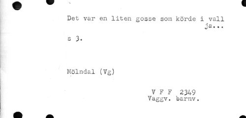 //// Det var en liten gosse som körde i vall //// ja... //// s 3. //// Mölndal (Vg) //// V F F 2349 //// Vaggv. barnv. ////