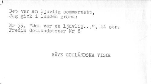 //// Det var en ljuvlig sommarnatt, //// Jag gick i lunden gröna: //// Nr 39, "Det var en ljuvlig.,.", 14 str. //// Fredin Gotlandstoner Nr 3 //// * //// ** //// SAVE GOTLÄNDSKA VISCR ////