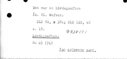 //// Det var en lördagsafton //// ^ Åb. NI. Wefvar. //// SLS 62, x 334; SLS 12$, 49 //// s- ^ //// Lördagsafton. //// No 49 (74) //// ÅBO SJÖBERGS SAML. ////