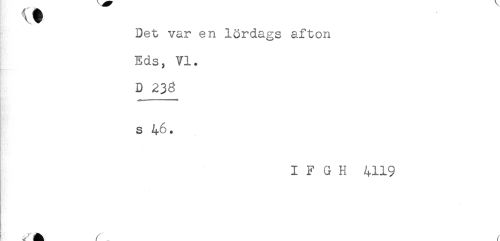 //// Det var en lördags afton //// Eds, VI. //// D 238 //// S 46. //// I F G H 4119 //// A r _ ^ ////