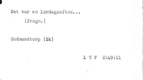 //// i //// ! //// Det var en lördagsafton... ( //// (fragm.) ! //// [ //// Gudmundtorp (Sk) ! //// - //// ! //// L U F 2249:11 //// < //// t //// k ////