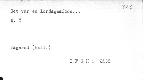 //// Det var en lördagsafton... //// i //// ! //// s. 6 //// i //// } //// Fagered (Hall.) //// t //// t //// i //// i //// i //// I F G H : 2438 ////
