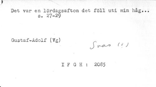 //// Det var en lördagsafton det föll uti min håg... //// s. 27-29 //// V //// Gustaf-Adolf (Vg) //// J ^ 7 //// * //// I F G H : 2085 //// ) ////