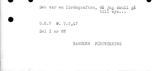 //// Det var en lördagsafton, då jag skull gå //// till bys... //// G.K.? W. 7-5,4? //// i Del I nr //// RANCKEN FÖRTECKNING //// i //// ! //// ! //// ! //// A' ^ ////