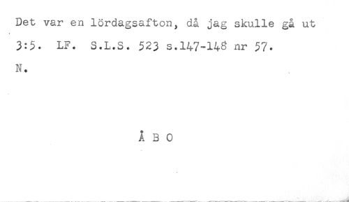 //// Det var en lördagsafton, då jag skulle gå ut //// 3:$. LF. S.L.S. $23 s.147-148 nr 57. //// N. //// ÅBO ////