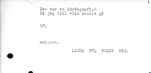 //// Det var en lördagsafton //// Då jag till vila skulle gå //// mel.not. //// LAGUS NYL FOLKV REG. ////