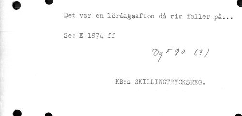//// Det var en lördagsafton då rim faller på... //// Se: E 1874 ff //// KB:s SKILLINGTRYCKSREG. ////